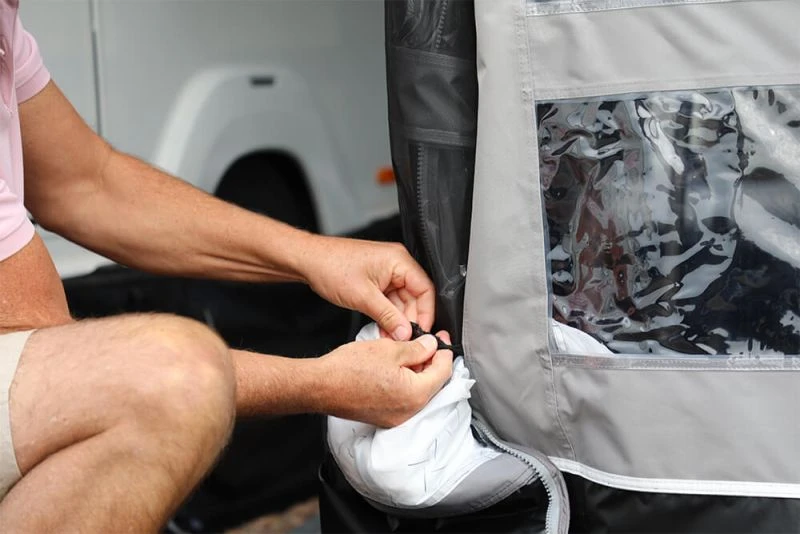 - Vango Draught Seal System – Our Patent Pending Draught Seal System creates a tight seal between the awning and your caravan, ensuring no draughts come into your awning. This eliminates the need for any poles, which may potentially have damaged your caravan.