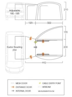 A fully sewn in inner made from breathable polyester with mesh at the top of both doors, for when you wish to add extra sleeping quarters, storage space,or just a bit of extra privacy to your Vango AirAwning.