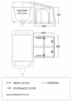 - Supplied with Double Action Pump – Rapidly inflate your awning (comes complete with a pressure dial)